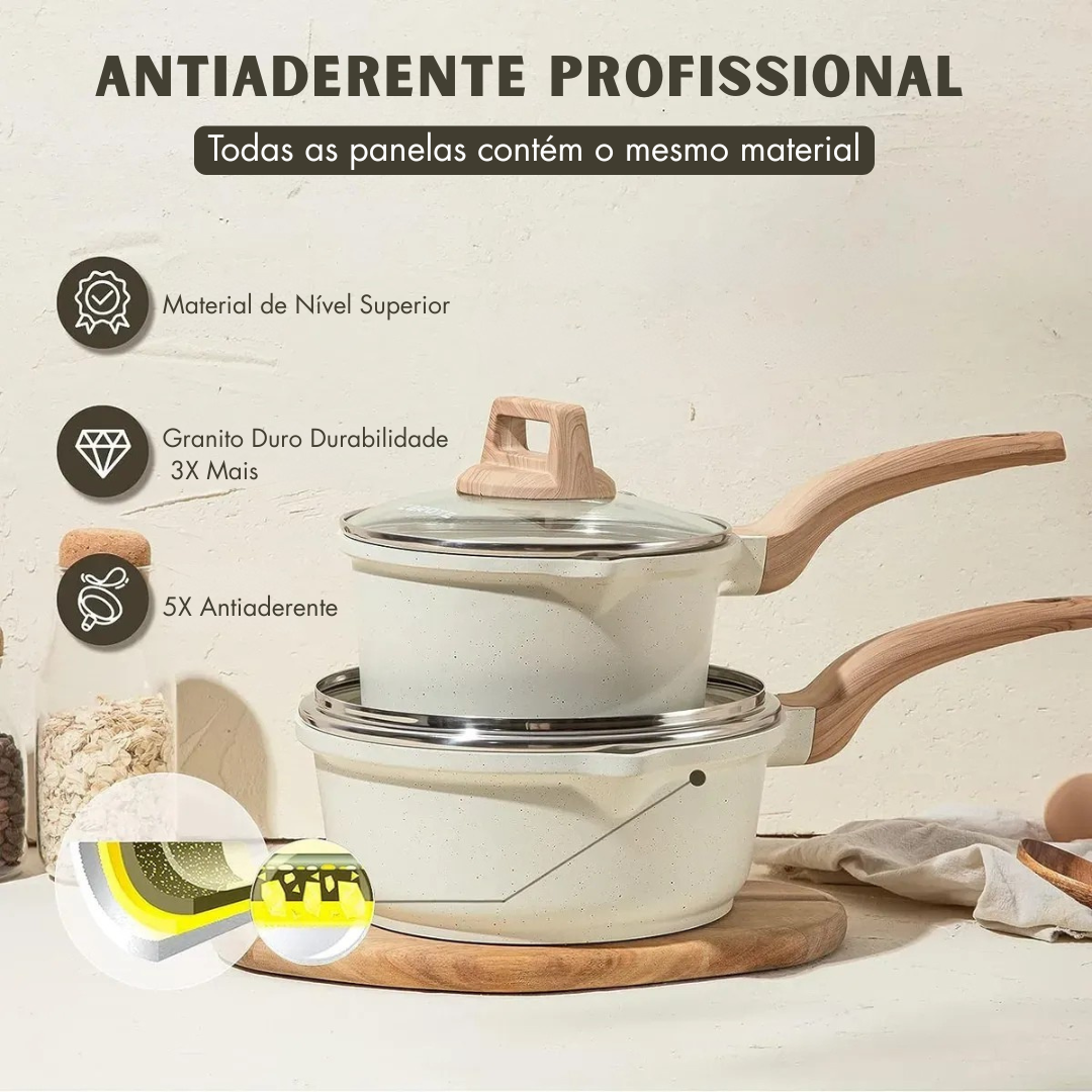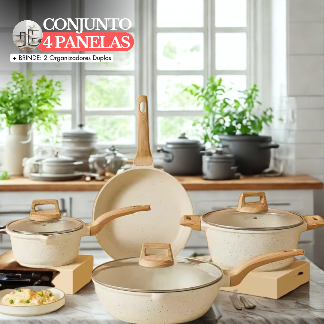 [Conjunto Aravita] 4 Panelas Antiaderente com Revestimento de Granito + BRINDE: 2 Organizadores Duplos