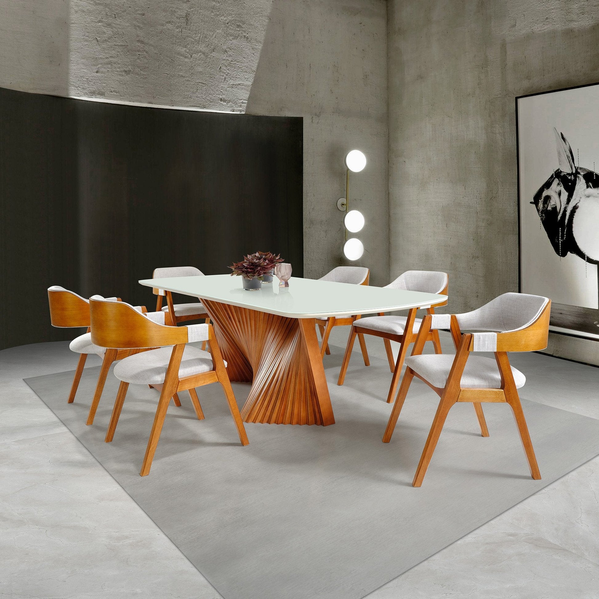 Conjunto de Mesa Retangular 4 pés Flórida pés em Madeira Maciça com Cadeiras Alexandria de Telinha no Tecido Linho Rustico Cinza 327