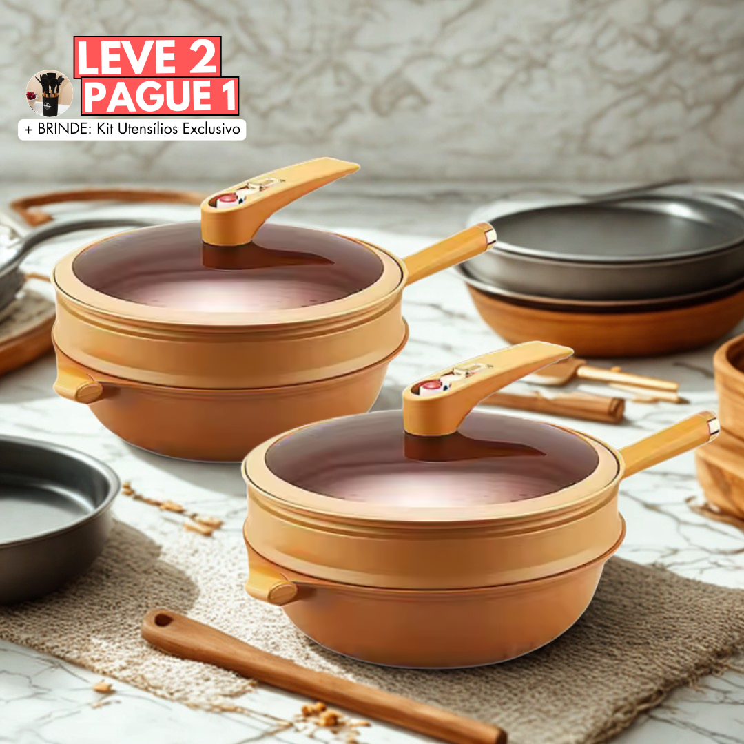 [Leve 2 Pague 1] Frigideira Moc de Cerâmica Multifunções 8 em 1 à Prova de Explosões + BRINDE: Kit Utensílios